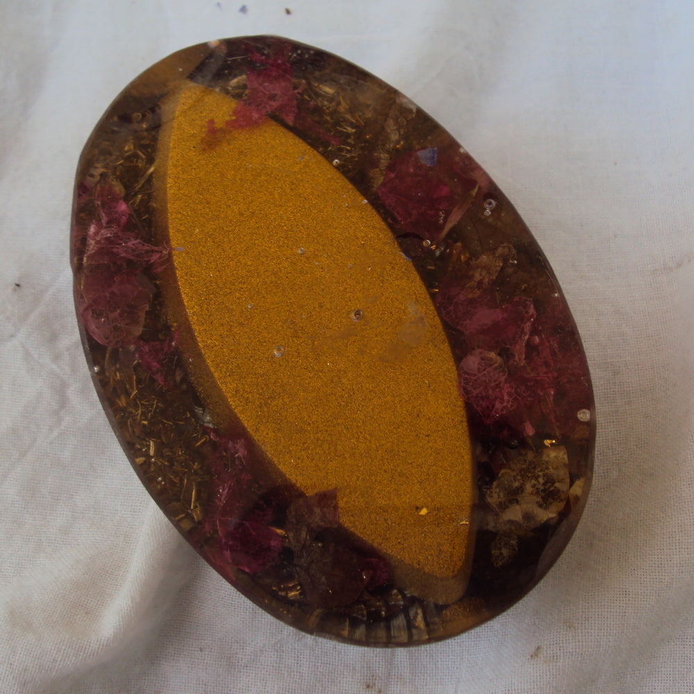 Fine mineral powders: selenite, blue kyanite, pyrite, shungite.