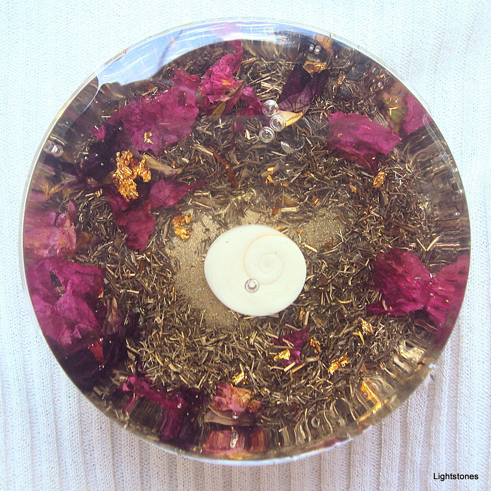 Lightstones Orgone Lightstones Orgone TB Orgone Dome, Space Enhancer with hematite and calendula flowers – Lightstones Orgone