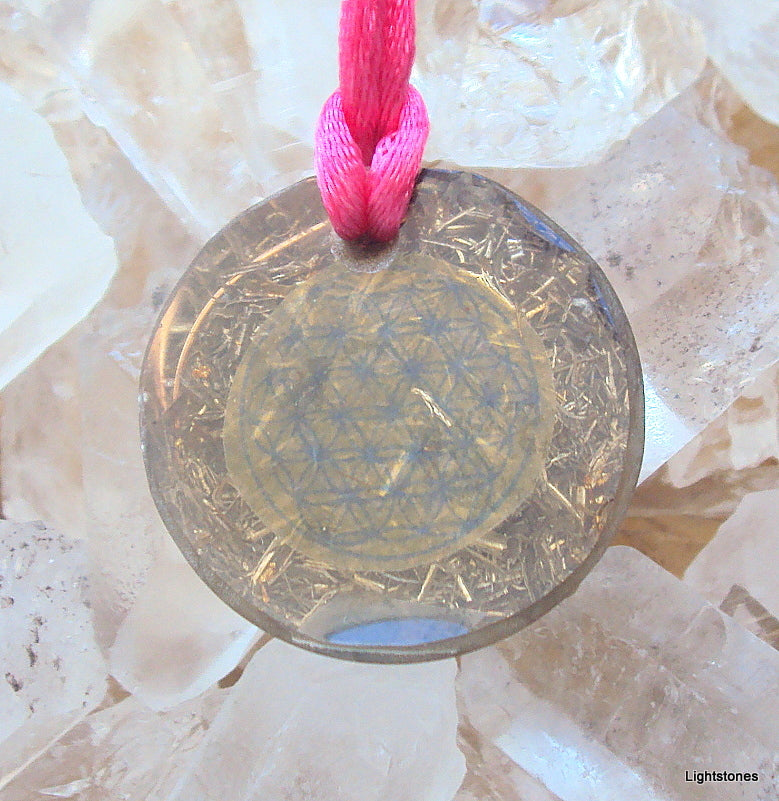 Unique Orgone Pendant containing semi-precious gemstones: herkimmer diamond, carnelian, garnet, danburite.