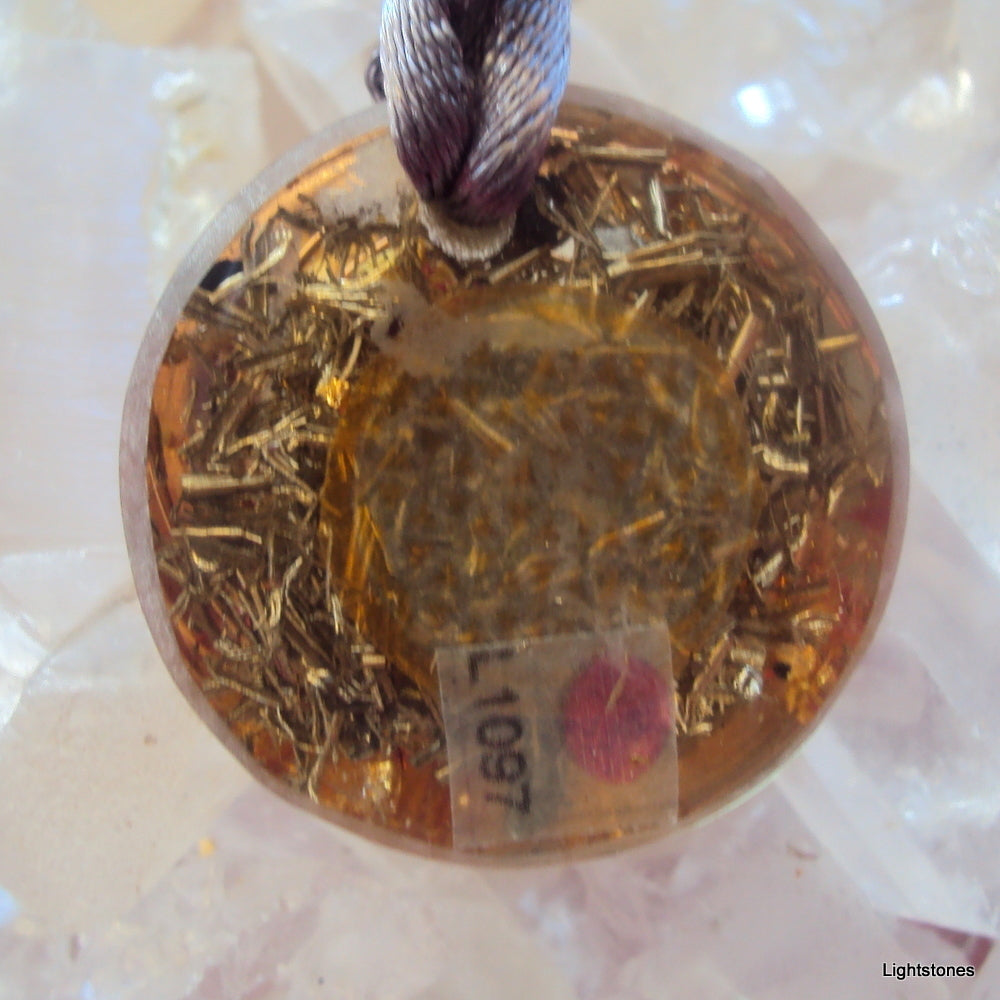 Unique Orgone Pendant containing semi-precious gemstones: ametyst, emerald, rose quartz, herkimmer diamond, danburite.