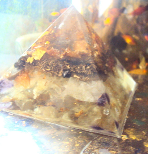 Contains semi precious gemstones: DT white quartz crystal, 4 single terminated quartz crystals, rose quartz.