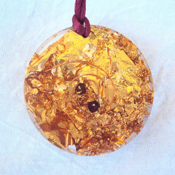 Lightstones Orgone Lightstones Orgone Golden torus disc, garnet and rose quartz – Lightstones Orgone