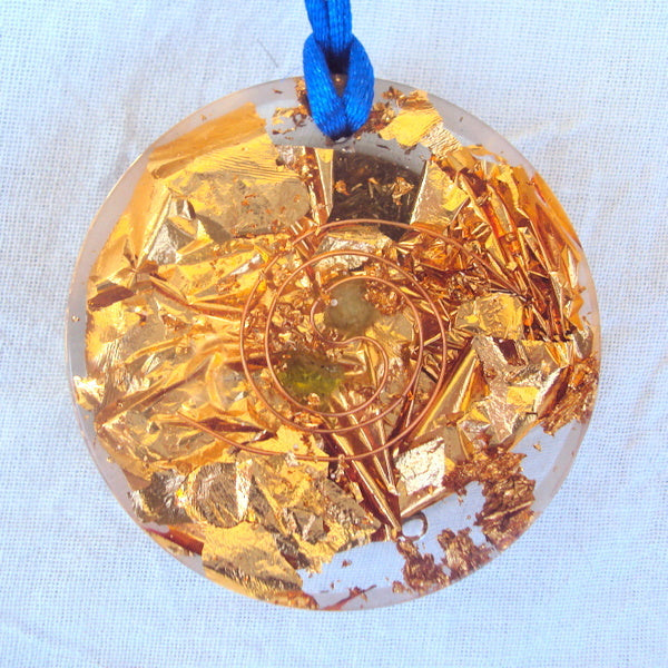 The golden healing energy of the disc and the herkimmer diamond is directed and flows towards the wearer.