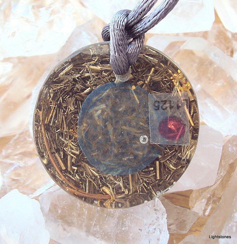 Unique Orgone Pendant containing semi-precious gemstones: lapis lazuli, peridot, herkimmer diamond, danburite.